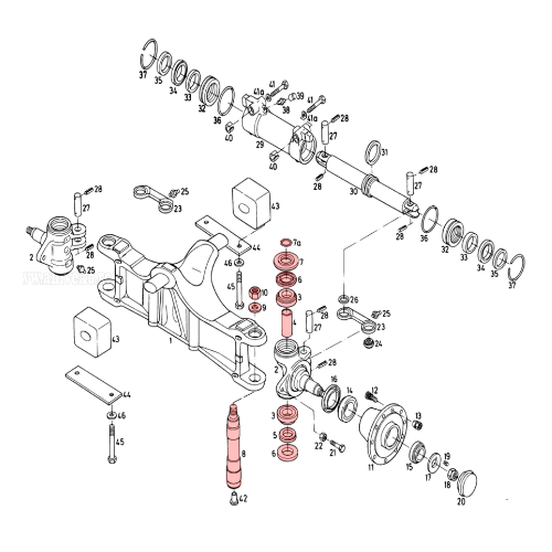 This steering knuckle axle repair kit is the ideal choice for servicing and repairing Linde 352-02 (Type 2 Axle) and 352-03 forklifts. With its help, you will ensure precise steering, optimal handling and extended life of critical steering system components.