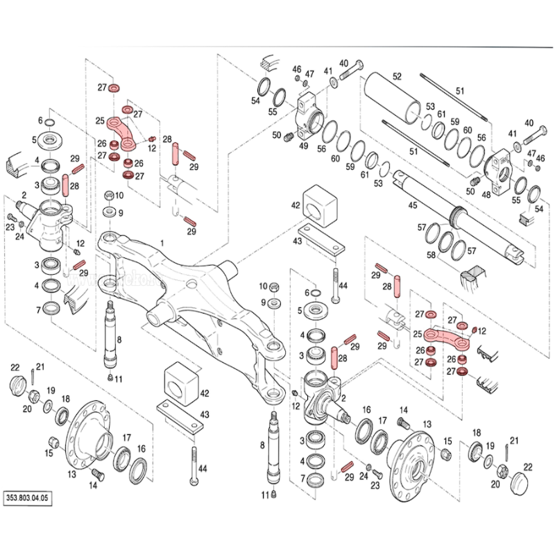 | Linde 396-01 / 396-02 Forklift Steering Link Kit Rear Axle This complete repair kit is specially designed for Linde 396-01 and 396-02 forklifts, ensuring accurate and safe operation of the rear axle steering system. By replacing worn components with the parts included in this kit, you will improve the handling and safety of the forklift by preventing premature wear of the steering system. --- Kit components and their functions: 🔹 Rear axle steering system connecting rod bolt safety - 8 pieces ✔ Ensures secure fastening of bolts and prevents them from loosening during heavy use. ✔ Reduces the risk of vibrations or mechanical play in the steering joints. 🔹 Rear axle steering system tie rod bolt - 4 pieces ✔ Essential element for the correct connection of the steering rod to the spindle and the steering cylinder. ✔ Made of durable materials to withstand the forces exerted during forklift operation. 🔹 Rear axle steering system connecting rod 396-03 – 2 pieces ✔ Main component of the steering system, which ensures precise transmission of wheel movement. ✔ Built to provide wear resistance and long durability. --- Benefits of using this kit: ✅ Perfect compatibility – Specially designed for Linde 396-01 and 396-02 forklifts. ✅ Durability and reliability - Parts made of high quality materials, resistant to intense mechanical stress. ✅ Steering Improvement – Reduces mechanical backlash, ensuring more precise control of the forklift. ✅ Reduction of maintenance costs – Avoid premature wear of other components by timely replacement of essential parts. ✅ Fast and efficient assembly - Complete kit with all the necessary components for a correct and trouble-free repair. --- Installation and maintenance instructions: 🔧 Preparation: ✔ Make sure the truck is on a stable surface and that the steering system is completely disconnected from the hydraulic supply. ✔ Clean the mounting area to remove any impurities that may affect the fixation of the new components. 🔧 Installation: ✔ Install the bolts and connecting rod according to the manufacturer's technical specifications. ✔ Make sure the bolt locks are properly secured to prevent them from loosening during use. ✔ Check that the steering tie rod is properly aligned and works without blockages. 🔧 Maintenance: ✔ Periodically inspect the steering system to identify premature wear of the bolts and connecting rod. ✔ Lubricate components according to manufacturer's recommendations to ensure smooth operation and maximum durability. ✔ Replace any damaged component in time to avoid major failure of the steering system. --- The Rear Axle Steering Tie Rod Kit for Linde 396-01 and 396-02 Forklifts is the ideal solution for restoring the safety and efficiency of the steering system, providing extended service life and improved performance. The high-quality components included in this kit ensure reliable repair and precise steering control. 📞 Order this complete kit now and keep your forklift in top working order! 🚜🔧 |